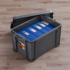 金属製バックル仕様のフタ付きコンテナです