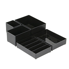 ●●ESD仕様…ESDとは静電気を放電するという意味です。静電気がパーツキャビネットやケースに留まらないようカーボンをプラスチックに配合しています。
