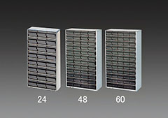 ●●ESD仕様…ESDとは静電気を放電するという意味です。静電気がパーツキャビネットやケースに留まらないようカーボンをプラスチックに配合しています。