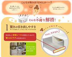 ●奥行のある押入れサイズでも楽に引き出せる金属レール付き。軽い力で開閉できます。