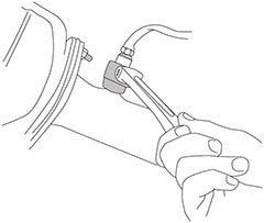 ●スパナ上部には3/8”のラチェットを使うとすばやい取り外し、取り付けができます。