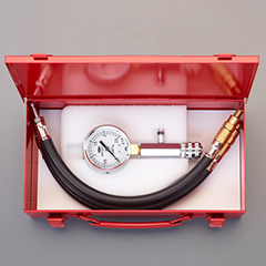 ●ホースアダプターによるスパークプラグ穴へのねじ込み固定式の為、一人での測定の可能です。