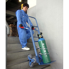 階段での運搬が簡単なボンベ用ハンドトラック