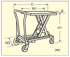 ●サイズ(mm)…B:450、C:950、H1:255~760、W1:700、W2:450