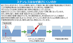 ●ステンレス製…耐蝕性、耐薬品性、衛生面に優れた製品です。