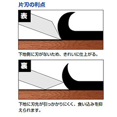 ●表:下地側に刃がないため、きれいに仕上がります。