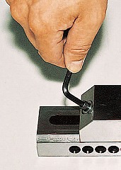 ●ピン差し替えの必要がなく、六角レンチのみでジョーをスライド、固定できます。