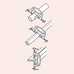 ●V型アダプタは配管等の丸材の芯出しに、丸型アダプタは角パイプや平板の固定に適しています。