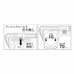 ●ガタがほとんどなく、素早い口幅調整ができるプッシュウォーム機構