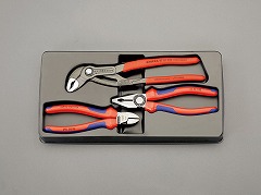 アゴ調整のスムーズなウォーターポンププライヤーと、手の負担の軽いコンフォートハンドル仕様のペンチ・ニッパーのセットです
