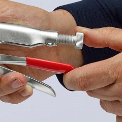 ●アゴの開きを調節するスクリューとリリースレバー付きです。