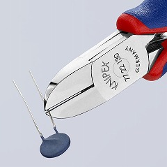 プライヤーヘッドの方へ突き出た細いカバーが、親指と人差し指の間にも安全で快適にガイドします