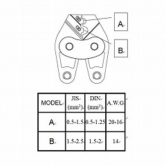 ●0.5~1.5m㎡は、Aにて圧着加工、1.5~2.5m㎡は、Bにて圧着加工(サブ画像をご参照ください)