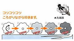 ●叩かずモルタル・タイル表面を滑らせ、反響音で剥離を診断します。