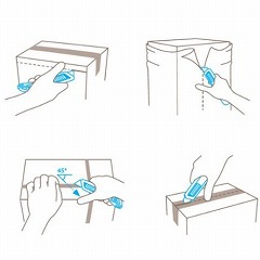 ●対応被削材…段ボール、シュリンクホイル、プラスチックストラップバンド、テープ、袋詰め商品、紙類、紐類、繊維素材、フェルト、フリース、ポリ塩化ビニル
