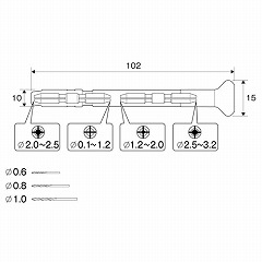 ●付属ドリル…φ0.6mm、φ0.8mm、φ1.0mm