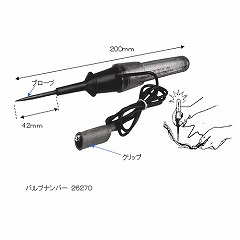 ●絶縁クリップ付(クリップでアースを取り、プローブをコードに刺してください。つながっていればランプがつきます。)