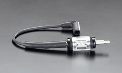 ② スパークプラグにテストコードの接続口(メス)を取り付けます。(ストレートか90°は状況に応じます。)テストコードのもう一方の接続口をテスターの端末(オス)に取り付けます。