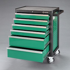 ●ツールワゴンと4種類の型抜きトレー付き工具セットの組合わせ商品。ワゴンの引出し(上部4段)には型抜きトレー付き工具セットがそれぞれ1セットぴったりと収まります。