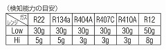 ●検知ガス…R22・R502・R134a・R404A・R407C・R410A・R600A・R23・R123・R507A・R32・R1234f 等のHFC/HCFC 系ガス