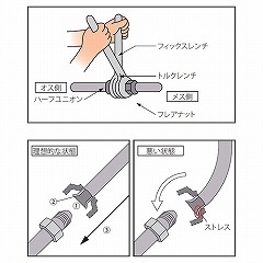 ご使用の際は、フレアナット面に対して垂直方向にトルクレンチを掛けてください。