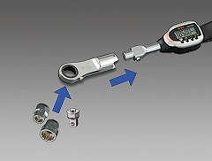 ●ラチェットめがね用ドライブ角アダプターを使用することにより、様々な9.5sq.のソケットやビットソケットを使用することができます。