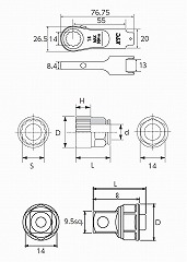 ●ラチェットめがねヘッド用ソケット…S:8mm、D:12.2mm、L:19mm、H:5.5mm、d:6mm、重量:17g