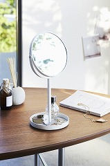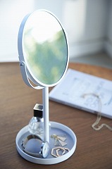 ディスプレイ感覚で収納できるトレイ付きスタンドミラー