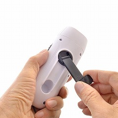 ●手廻し充電(1分間)で、約10分間のライト点灯、または約10分間のラジオ稼働が可能。