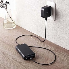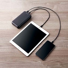 ●USB Power Delivery 規格に準拠し、20W出力可能。対応機器を超高速充電できる、20000mAhモバイルバッテリーです。