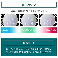 ●きれいランプ搭載により、センサーで計測した空気の状態がきれいな時は青、やや汚れているときは緑、汚れているときは赤で表示します。