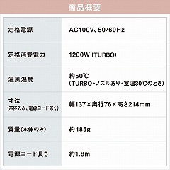 ●温風温度範囲…約50℃(TURBO・ノズルあり・室温30℃のとき)