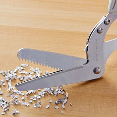 ●特殊加工のギザギザ3枚刃が、1度のカットでタテヨコ同時に紙を刻み、はさみが通った部分をわずか2.2mm角の紙くずにしてしまいます。
