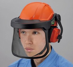 ●ヘルメット、メッシュシールド、イヤーマフの3点セットで頭・顔・耳を保護します。