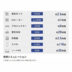 DC12V:約27.2時間(60W時)