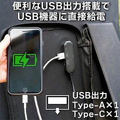 ●スマートフォン等へ直接給電ができるUSB出力付き