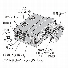 ●24V車からAC100V、DC12V、USBが使用できます。