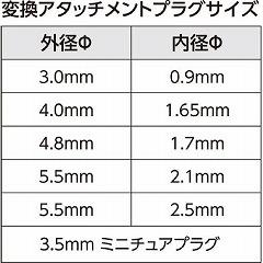 ●変換プラグサイズ…外径:3.0mm/4.0mm/4.8mm/5.5mm/3.5mmミニチュアフラグ