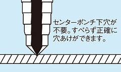 ●センターポンチ、下穴は不要。すべらず正確に穴が開きます。