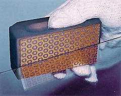 細い帯状に切り込み線を入れたガラスを割ります。