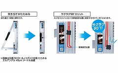 ●畳んだ状態から開くだけで簡単に丸ノコガイド定規に戻せます。
