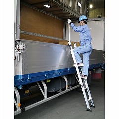 ●トラックのあおりに引っ掛けるだけで安全に昇降できるトラック昇降はしごです。
