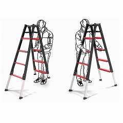 ●伸縮脚435mmの調整を立ったままできるという進化とステップ幅60mmによる安心感を併せ持った新型脚立。