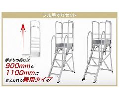 ●手すりの高さは900mmと1100mmに変えられる兼用タイプ