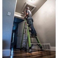 ●その② 安全に登れるように脚立の下部分はワイドに、上部分は柱の隙間に収まるように