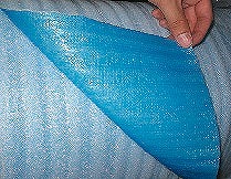 ●発泡ポリエチレンと強化フィルムを貼り合せてエンボス加工をしています。