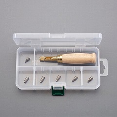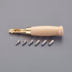 ●使用する場合はポンチの刃が垂直になるようにしてください。また下敷きにカッティングマット等を使用し、鉄板などの硬い金属は使用しないください。厚手の革は複数回あけてください。