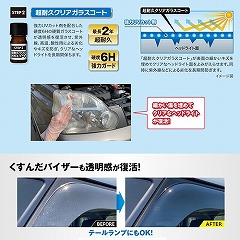 ●硬度6Hの硬質ガラスコートが透明感を復活させ、ヘッドライトをキズや劣化から保護します。