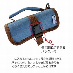●長さが調節できるバックル付。ちょっとかさばるものでもくるくる丸めてカチッと止められます。