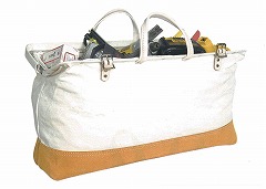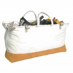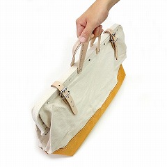 丈夫なキャンバス生地を高品質の革素材で補強した、軽くて収納力に優れたバッグです